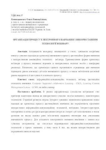 - Коневщинська, О.Е. (2011) Organization of eLearning webinar on using technology інформаційні технології і засоби навчання, 5 (25). pp. 1-19. ISSN 2076-8184