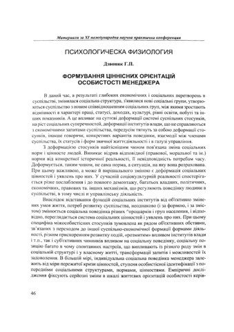 - Дзвоник, Галина Петрівна (2015) Formation of orientations manager’s personal values Материали за 11-а международна научна практична конференция, «Новината за напреднали наука», - 2015. Том 11. Психология и социология. Музика и живот. pp. 46-48. ISSN ISBN 978-966-8736-05-6