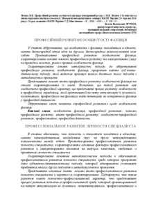 The article proves that personality and specialist are in unity, have direct influence on each other, directly mutually conditioned by each other. It analyzes professional development of the specialist’s personality and characterizes main factors of the professional development. It also focuses on the leading properties, features and manifestations of the specialist’s personality. It characterizes main methodological approaches to the proof of the specialist’s personality professional development. It is focused on the priority of the subject-activity approach which, at the same time, takes into consideration demands of other approaches and methodological principles. It represents main stages of the personality specialist’s professional development and briefly characterizes its nature. It finds out that such development is personality professional in nature that shows the process of personality development in the professional environment aimed at full mobilization of its spiritual, cognitive, professional and expert kinds of potential as a definite specialist in a professional activity and at achieving essential results in it. It proves the nature of the concept «professional development» as to the specialist’s personality.