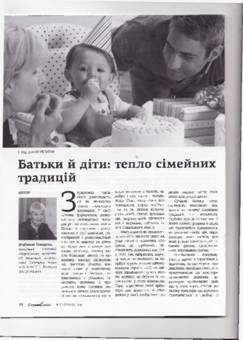 - Токарєва, Людмила Дмитріївна (2015) Parents and children: warm domestic traditions Справи Сімейні, 12 (216). pp. 22-23. ISSN 2308-8095
