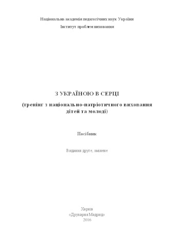 - Бех, І.Д. (orcid.org/0000-0002-4763-1673), Кириченко, В. І. and Петрочко, Ж.В. (2016) With Ukraine in the heart (training of national-patriotic education of children and young people) [Teaching Resource]