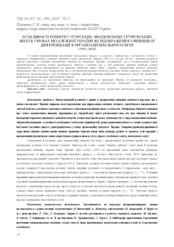 - Шевченко, Світлана Миколаївна (2016) Features of the development of the Hungarian, Romanian and Moldovan schools in the conditions of independent Ukraine as a reflection of external differentiation in the organization of school education (1991-2010) In: XI International scientific-practical conference "Higher Education in the context of Ukraine's integration into the European educational space", 24-26 листопада 2016, м. Київ-Слупськ, Україна,Польща.