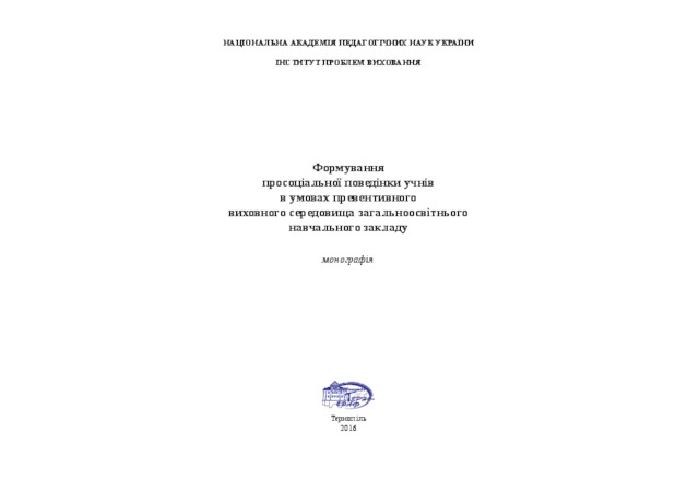 ФОРМУВАННЯ ПРОСОЦІАЛЬНОЇ ПОВЕДІНКИ УЧНІВ В УМОВАХ ПРЕВЕНТИВНОГО ВИХОВНОГО СЕРЕДОВИЩА ЗНЗ.pdf Download (1MB) | Preview |