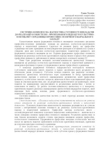 - Ткачук, Г. Е. (2016) System-complex diagnostics of readiness of teachers to implement student–centered approach in the cultural and educational environment of vocational education institutions In: Розвиток професійної культури майбутніх фахівців: виклики, досвід, стратегії і перспективи , 1 . ІПТО НАПН України, м. Київ - Ірпінь, Україна. ISBN 978-966-331-567-6