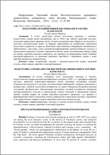 Training of research and research pedagogical staff in 1930-1039 was carried out during the most dramatic events in the history of Ukrainian science and education development. It was characterized by the occurrence of discrepant trends and contradictions. In Ukraine on the one hand strengthening the national economy by means of realizing the industrialization, collectivization, cultural revolution and forming a new community – the “Soviet people”, which was accompanied by deformation in all spheres of social life as a result of Stalin’s command and authoritarian system of social processes management. From the other hand – the terror against Ukrainian scientific intelligentsia, ideological pressure on scientific community, curtailing the Ukrainization policy and fight against “nationalism”, mass repression and physical annihilation of more than 80 percent of creative scientific intelligentsia. That is why one of the priorities, systematically emphasized on Party’s congresses and plenums, was the staff selection and filling the vacuum of researches, especially postgraduate students, in higher education and research institutions. It is grounded in the paper that to meet this goal the Soviets: adopted the regulatory legal acts, main provisions of which retain relevance even today; systematized the requirements and procedure for admission to postgraduate study, postgraduates training, their rights and duties, proclaimed the improvement of postgraduates’ material welfare and living conditions; introduced the centralized approach to scientific degrees award and academic ranks conferring; established the recruitment on the basis of party and class principle, which led to firming a new generation of scientists-marxists and accretion of scientific, party and state staff in the new party and soviet nomenclature.