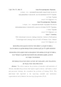 Яцишин А.В._ІНФОРМАТИЗАЦІЯ ОСВІТИ УКРАЇНИ ТА ПІДГОТОВКА PhD.pdf Download (245kB) | Preview |