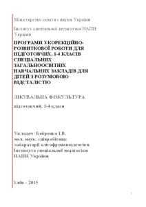 - Бобренко, Інна Всеволодівна (orcid.org/0000-0002-9501-5461) (2016) «Exercise therapy» (preparatory classes 1-4): programs of correction and developmental work for preparatory, 1-4 classes of special secondary schools for children with mental retardation [Teaching Resource]