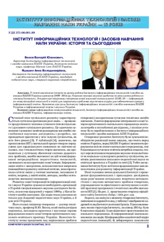- Биков, В.Ю. and Яцишин, А.В. (orcid.org/0000-0001-8011-5956) (2015) Information Technologies and Learning Tools of NAPS of Ukraine: history and present Комп'ютер у школі та сім'ї, 5. pp. 3-10. ISSN 2307-9851