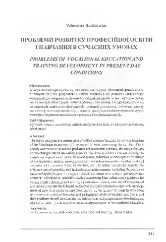 - Радкевич, В.О. (2016) Problems of vocational education and training development in present day conditions Edukacja a rynek pracy. Ksztalcenie a kariera zawodowa, 1 (2). pp. 241-250. ISSN 978-83-61601-50-0