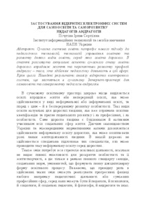 - Пічугіна, І.С. (orcid.org/0000-0001-6460-8507) (2015) The application of open electronic systems for self-education and self-development of teachers-andragogues In: Десята міжнародна конференція "Нові інформаційні технології в освіті для всіх" . Міжнародний науково-навчальний центр інформаційних технологій та систем, м. Київ, Україна, pp. 110-116. ISBN 978-966-02-7867-7