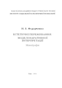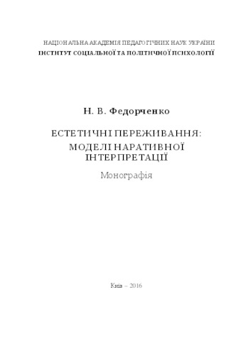 The monograph presents the results of a study of narrative interpretation of the individual aesthetic experience. Analyzes relevant methodological confrontation in psychological studies of aesthetic experience. We characterize the influence of supra-individual factors on the discursive formation of the individual characteristics of the design and interpretation of the individual aesthetic experience, and the role of precedent texts in the spread of discursive practices. The structure and the total concept of "aesthetic experience" that exists in the range of mass discourse proposed typology of narrative interpretation models of this phenomenon. Addressed to researchers in the field of psychology, aesthetics, psycholinguistics, pedagogy, practical psychologists and therapists, as well as anyone interested in the problems of narrative interpretation of personal experience.