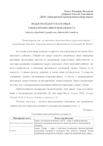 In theses considered as the The image of young scientist conditions of professional mobility.