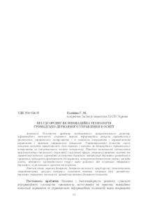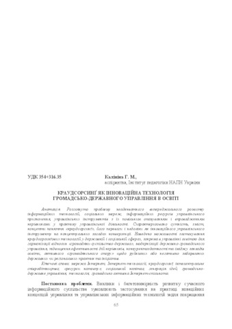 - Калініна, Г. М. (2016) Crowdsoursing as an innovative technology of the civic-public administration in education. Вісник Черкаського університету: Педагогічні науки, 5. pp. 65-72. ISSN 2076-586X