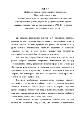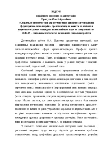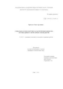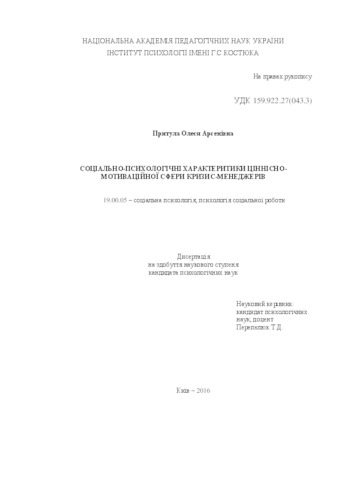 - Притула, О.А. (2016) Socio-psychological characteristics of value-motivational sphere- managers crisis Dissertation candidate thesis, Інститут психології імені Г.С. Костюка.