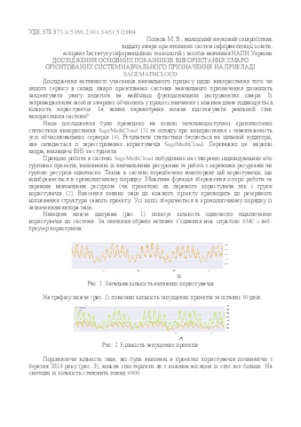 - Попель, М.В. (2016) The study of basic indicators of cloud oriented systems for educational purposes on the example SageMathCloud In: Звітна наукова конференція Інституту інформаційних технологій і засобів навчання НАПН України: матеріали наукової конференції . ІІТЗН НАПН України, м. Київ, Україна, pp. 211-216.