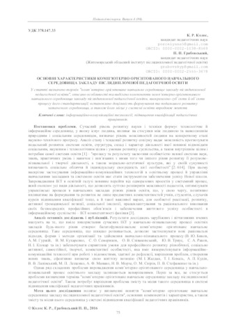 - Колос, К.Р. and Грабовський, П.П. (2016) Main Characteristics of Computer-Oriented Learning Environment at the Institute of Postgraduate Pedagogical Education Zhytomyr Ivan Franko State University Journal, 4 (86). pp. 75-80. ISSN 2076-6173