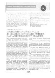 - Козленко, О. Г. (2001) Coefficient of personal involvement as a measure of results of students group learning activities Біологія і хімія в школі, 6 (28). pp. 14-15.