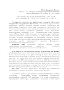 - Носенко, Ю.Г. (2016) E-inclusion as an effective strategy to ensure the accessibility and openness of education Педагогічні інновації: ідеї, реалії, перспектива, 2 (17). pp. 116-123. ISSN 2413-4139