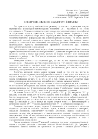 - Носенко, Ю.Г. (2016) E-Inclusion: Opportunities and Challenges In: Матеріали Звітної наукової конференції Інституту інформаційних технологій і засобів навчання НАПН України . Інститут інформаційних технологій і засобів навчання НАПН України, м. Київ, Україна.