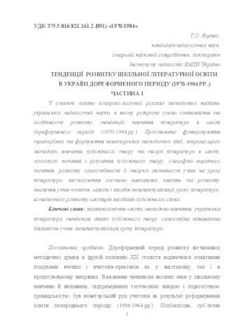 ТЕНДЕНЦІЇ РОЗВИТКУ ШКІЛЬНОЇ ЛІТЕРАТУРНОЇ ОСВІТИ В УКРАЇНІ ДОРЕФОРМЕННОГО ПЕРІОДУ (1970-1984рр.) ЧАСТИНА І.pdf Download (548kB) | Preview |
