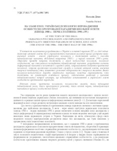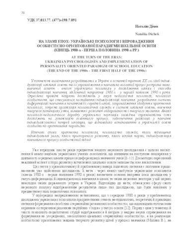 - Дічек, Наталія Петрівна (2016) At the turn of the eras: Ukrainian psychologists and implementation of personality oriented paradigm of school education (the end of the 1980s - the first half of the 1990s.) Teacher education: Theory and Practice (21). pp. 70-76. ISSN 2309-9763