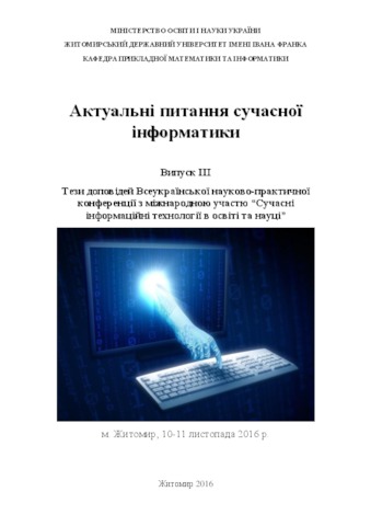 - Пічугіна, І.С. (orcid.org/0000-0001-6460-8507) (2016) Criteria and indicators of the use of networking technologies of open systems for spiritual and moral development of personality in non-formal adult education In: Актуальні питання сучасної інформатики: Тези доповідей Всеукраїнської науково - практичної конференції з міжнародною участю "Сучасні інформаційні технології в освіті та науці" (10 - 11 листопада 2016 р.) (3). Житомирський державний університет імені Івана Франка, м. Житомир, Україна, pp. 59-62.