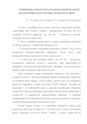 - Локшина, Олена Ігорівна (orcid.org/0000-0001-5097-9171), Овчарук, О.В., Авшенюк, Н.М. (orcid.org/0000-0003-1012-005X) and Бородієнко, О.В. (2016) Comparative Education Studies in the National Academy of Pedagogical Sciences of Ukraine: Steps of Growing Ukrainian Educational Journal (2). pp. 5-12. ISSN 2411-1317
