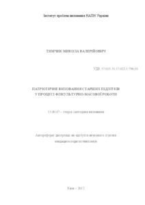 In the thesis, the theoretical justification and practical solution to the pressing issue of Patriotic education of older adolescents in the process of physical-media work, which is reflected in the definition and validation of the content, forms and methods of Patriotic education.