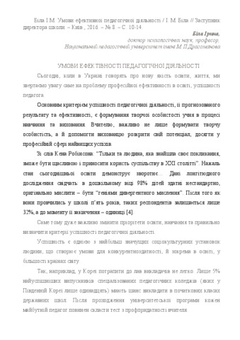 - Біла, І.М. (2016) Conditions of effective teaching activities Заступник директора школи, 8. pp. 10-14.