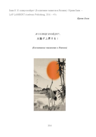 Біла, І.М. (2016) And the sun will rise! (Education of talent in Japan) Academic Publishing . LAP LAMBERT Academic Publishing, м. Берлін, Німеччина. ISBN 978-3-659-90049-5