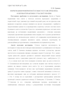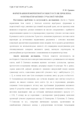 - Єршова, Людмила Михайлівна (2015) The reference individual formation as a problem of the educational practices in modern Ukraine Вісник Черкаського університету. Серія: Педагогічні науки, 6 (339). pp. 119-124. ISSN 2076-586Х