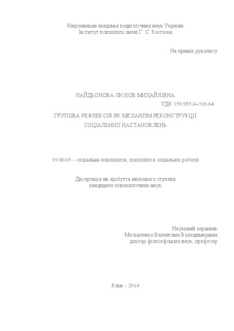 - Найдьонова, Л.М. (2014) Group reflection as the mechanism of attitudes reconstruction Dissertation candidate thesis, Інститут психології імені Г. С. Костюка.