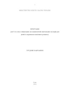 Labor training programs for Grade 5 are aimed at the implementation of the goals and objectives of the educational sector "Technologies", compiled in accordance with the Typical curriculum of a special general educational institution for children with mental retardation. They are designed taking into account the cognitive abilities of students with a delay in mental development and contribute to the correction of psychophysical development during the educational process. The program is based on the construction and volume of the training material. Based on local learning conditions and opportunities for further employment, graduates of the school choose the appropriate types of work, specify the content of the basic programs (some topics may not be studied) or, by their example, develop new ones for other types of work. The distribution of teaching time is indicative, the teacher can change the number of hours when studying different topics within the hours of the Typical Curriculum, taking into account the level of abilities of students.