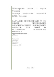 - Лапін, А.В. (orcid.org/0000-0003-1717-7892), Савчук, О.А., Мельникова, Л.О. and Іщенко, О.В. (2015) Educational programs for 5-9 (10) grade special classes of secondary schools for children with mental retardation. Labour training. Grades 6-7 [Teaching Resource]