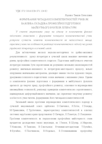 ФОРМУВАННЯ ЧИТАЦЬКИХ КОМПЕТЕНТНОСТЕЙ ЯК ВАЖЛИВА СКЛАДОВА ПРОФЕСІЙНОЇ ПІДГОТОВКИ МАЙБУТНЬОГО ВЧИТЕЛЯ ЛІТЕРАТУРИ.pdf Download (176kB) | Preview |