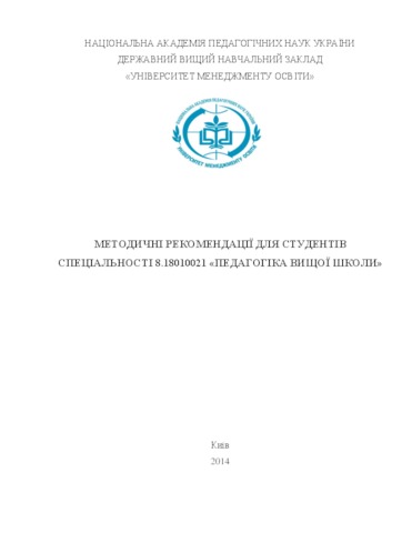 | Divisions: | State institution of higher education «University of educational management» > Інститут менеджменту та психології |
