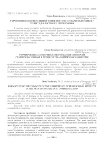 The author considers the necessity of forming communicative competence in high school students, talks about the role of dialogue in the learning process. Efficiency of formation of communicative competence of high school students depends on the forms and methods of training used by the teacher in the learning process. First of all, the teacher should be focused on the personality model of interaction with the student.