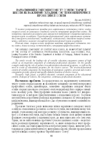 - Кизенко, Василь Іванович (2016) The variable component of content high school as an important element of the system of continuous professional education Дидактика: теорія і практика. pp. 58-64.