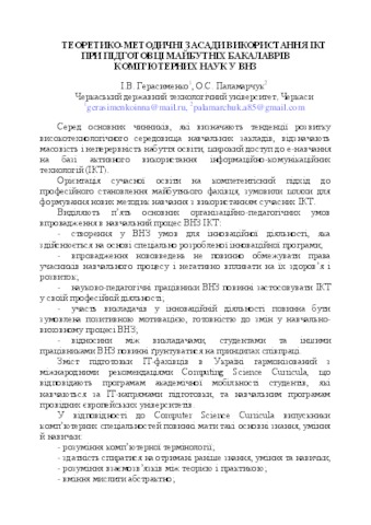 In materials drawn attention to the theoretical and methodological foundations of information and communication technologies in the preparation of future Bachelors of Computer Science.