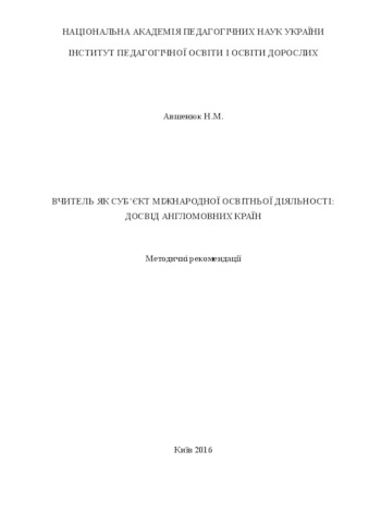 - Авшенюк, Н.М. (orcid.org/0000-0003-1012-005X) (2016) The teacher as a subject of international education: the experience of English-speaking countries [Teaching Resource] (Unpublished)