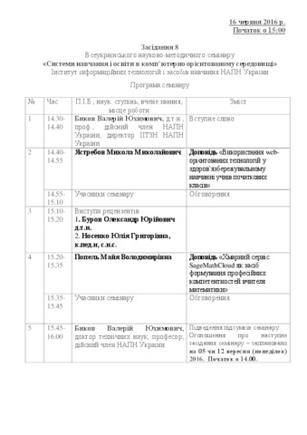 Audio and Program Session 8 Ukrainian scientific-methodical seminar "System of training and education in computer-oriented environment" from 16.06.2016.