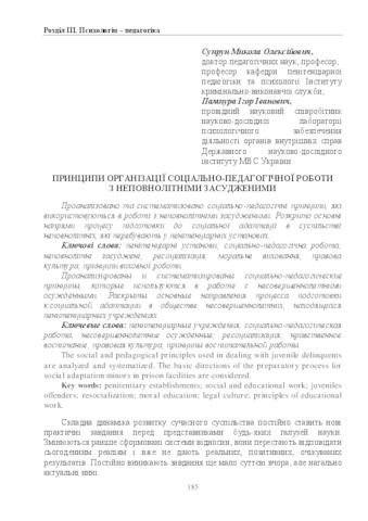 - Супрун, М.О. (orcid.org/0000-0002-4198-9527) and Пампура, І.І. (2014) The principles of social and pedagogical work with juvenile convicts Науковий вісник Інституту кримінально-виконавчої служби, 1 (5). pp. 185-190.