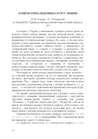 - Єчкало, Ю.В. and Теплицький, І.О. (2003) Computer support of physics course Теорія та методика навчання математики, фізики, інформатики. - Т.2: Теорія та методика навчання фізики (3). pp. 94-100. ISSN 2309-1479