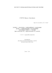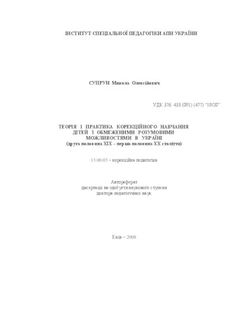 - Супрун, М.О. (orcid.org/0000-0002-4198-9527) (2008) Theory and practice of the correctional education of the mentally deficient children in Ukraine (the second half of the XIX – the first half of the XX century) Other thesis, Інститут спеціальної педагогіки.