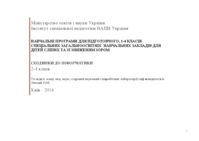 - Легкий, О.М. (2014) Educational programs for preparatory, 1-4 classes special secondary schools for blind and children with visual impairments: Steps to informatics 2-4 classes [Teaching Resource]