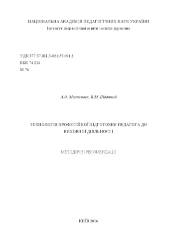 - Молчанова, А.О. (orcid.org/0000-0001-9738-7341) and Піддячий, Володимир Миколайович (orcid.org/0000-0002-8596-6749) (2016) Technology of teacher training to educational activities [Teaching Resource] (Unpublished)