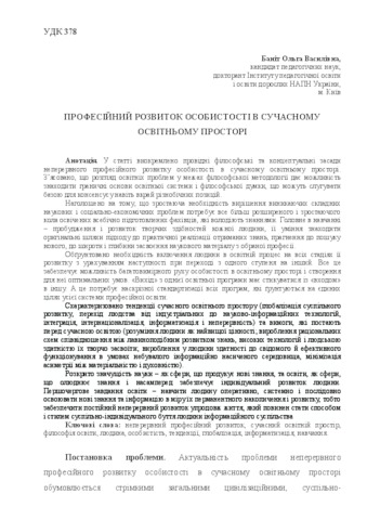 | Depositing User: | д. пед. н. Ольга Василівна Баніт |
