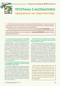 In 2011 junior schoolboys began the study of course of “Mathematician” on the new program. Quite a bit changes by comparison to a previous release, which and to this pores is a point at an issue among teachers, took place in it. Expedient were these innovations? The looks to these questions express original programmers Svetlana SKVORCOVA, dr of ped. sciences, professor of department of mathematics and method of its studies of DZ the “Yuzhnoukrainskiy national pedagogical university the name of K.D.Ushinskogo” and Oksana ONOPRIENKO,doktorant of Institute of pedagogics of NAPN of Ukraine.