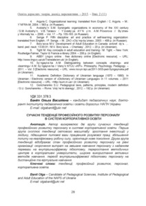 - Баніт, Ольга Василівна (2016) Modern trends in professional development in corporate education Adult Education: Theory, Еxperience and Рrospects, 2 (11). pp. 28-38. ISSN 2308-6386