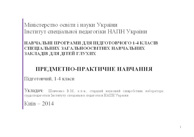 Програма ПРЕДМЕТНО-ПРАКТИЧНЕ НАВЧАННЯ (підг, 1-4 кл) для глухих дітей.pdf Download (383kB) | Preview |